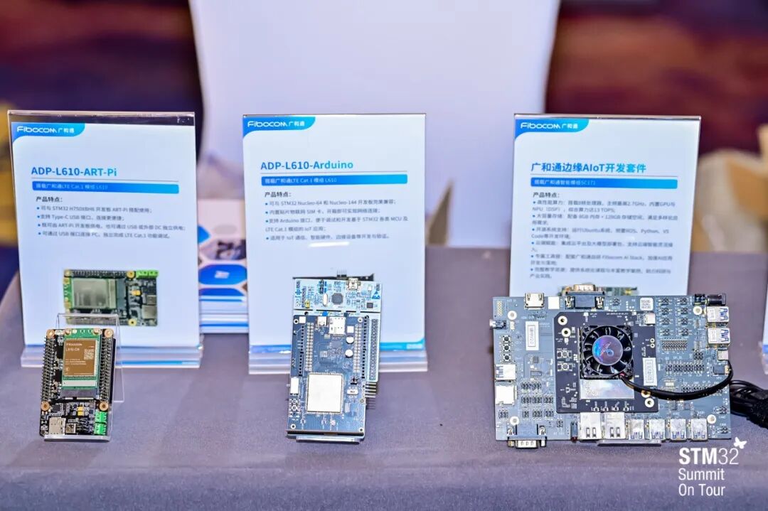 现场展出的产品覆盖5G、LTE Cat.4、LTE Cat.1、LTE Cat.M及SoC等全系列模组,充分展示了广和通在无线通信领域的深厚技术积累与丰富产品矩阵。值得关注的是,广和通还带来了基于STM32平台定制,适配广和通Cat.1模组的开发套件,其具备丰富硬件接口和开源兼容性,可部署多种边缘计算任务,显著提升开发效率与应用价值。
