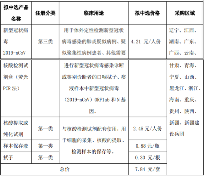凯普生物中选产品基本情况
