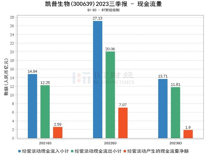 在现金流量方面,公司2023年三季度经营活动产生的现金流量净额为1.9亿元,较上年同期的7.07亿元大幅下滑。经营活动现金流入小计为13.71亿元,较上年同期的27.13亿元有所下降。经营活动现金流出小计为11.81亿元,较上年同期的20.06亿元有所减少。这些数据显示,公司的现金流量状况较为紧张,经营活动产生的现金流量净额大幅下滑。