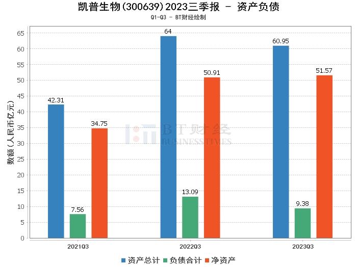 从资产负债方面来看,凯普生物2023年三季度的总资产为60.95亿元,相较于上年度末的67.31亿元有所下降。负债总额为9.38亿元,较上年度末的15.04亿元明显减少。净资产为51.57亿元,与上年度末的52.27亿元相比略有下滑。资产负债率为15.39%,较上年度末的22.35%有所下降。这些数据显示,公司的负债规模在缩小,资产负债率也有所降低,整体财务状况较为稳健。
