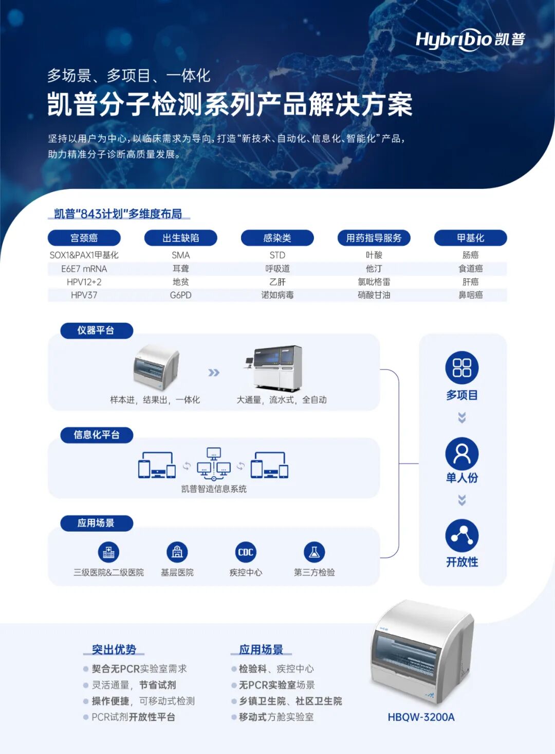 凭借多年深耕积累,凯普宫颈癌基因甲基化检测产品可实现精准分流,有效避免过度诊疗;结合凯普高度智能化、自动化的检测系统,可实现智能化检测。同时,凯普推出“凯普康和医检5.0”战略,整合分子诊断产品、医学检验服务、凯普康和医院三大核心资源,通过数字化平台落地以甲基化检测等创新技术为重点的各种高发肿瘤风险评估,让肿瘤早筛服务更便捷、更个性化。