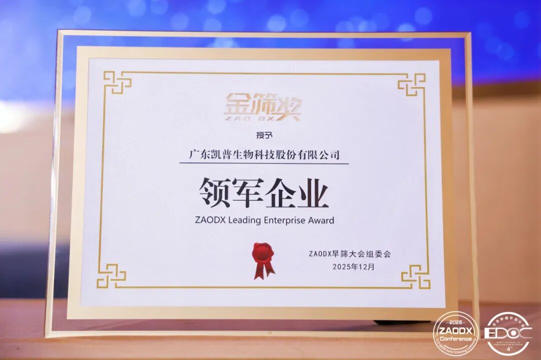 21日下午,第四届“金筛奖”颁奖仪式举行,该奖项旨在致敬持续深耕癌症早筛领域、依然坚守行业初心、愿意积极推动早筛技术发展与行业进步的机构与个人。凯普生物凭借在肿瘤早筛领域的深耕坚守、技术积累与成果转化,成功入选“领军企业”榜单。这份荣光,是行业对凯普的高度肯定,也印证了其“以精准诊断护航生命健康”的初心。