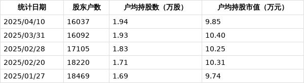 从4月14日公开信息显示,德艺文创截至2025年4月10日公司股东户数为1.60万户,较上期(2025年3月31日)减少55户,降幅为0.34%,变化不大。
