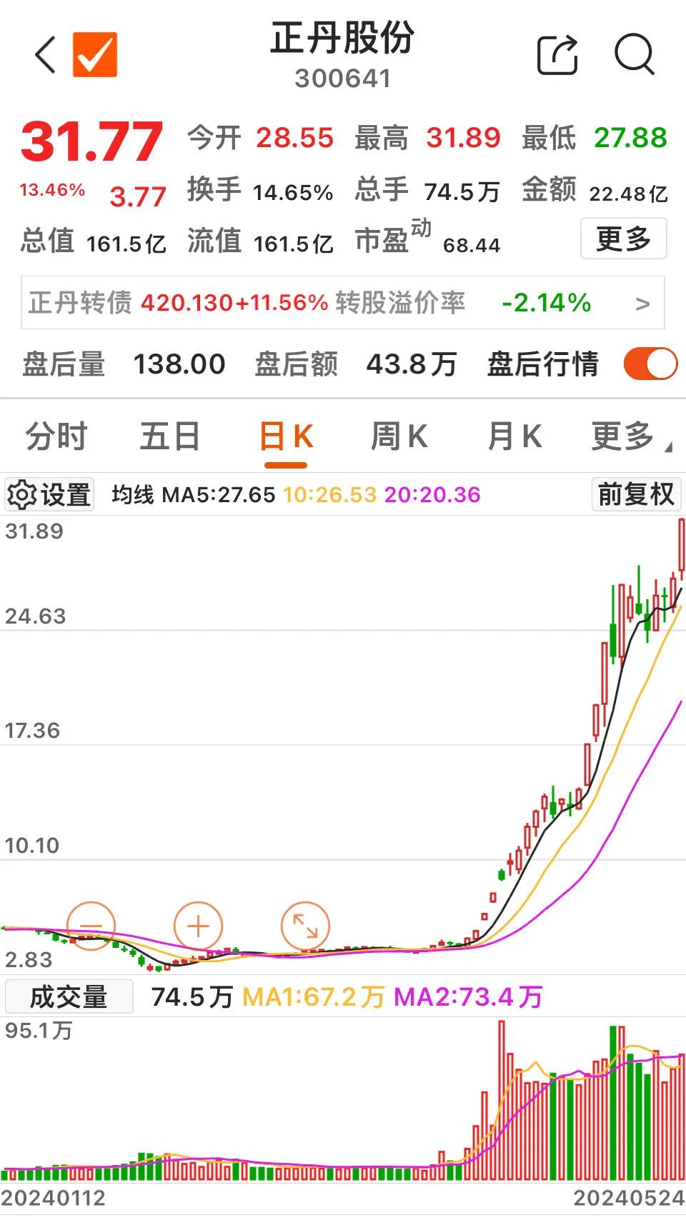 此外,正丹转债今日也大涨11.56%,较2月低点106.45元上涨约300%。