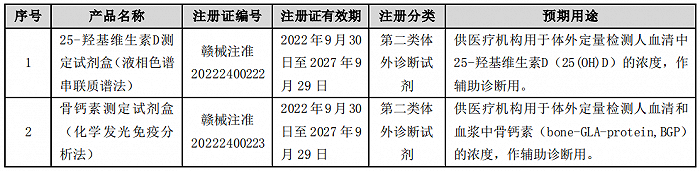 透景生命10月20日公告,全资子公司江西透景生命科技有限公司于近日取得江西省药品监督管理局颁发的2项医疗器械注册证,产品分别为25-羟基维生素D测定试剂盒(液相色谱串联质谱法)、骨钙素测定试剂盒(化学发光免疫分析法)。