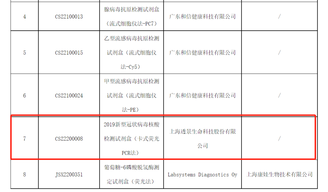 据国家药监局网站,2023年3月24日发布医疗器械终止注册审查告知书,上海透景生命科技股份有限公司申请的2019新型冠状病毒核酸检测试剂盒(卡式荧光PCR法)终止注册。