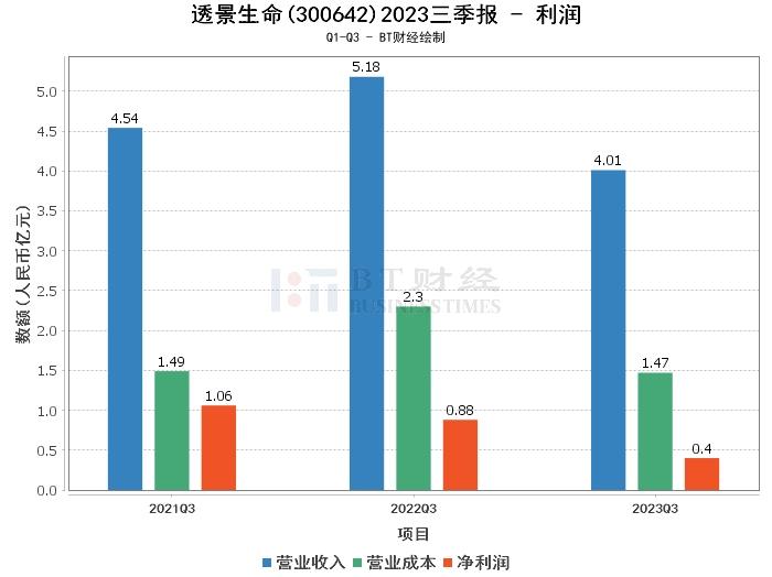 在利润方面,透景生命2023年三季度的营业收入为4.01亿元,较上年同期的5.18亿元有所减少。营业利润为4149.23万元,较上年同期的9445.26万元大幅下降。营业成本为1.47亿元,较上年同期的2.3亿元有所减少。净利润为4000.13万元,较上年同期的8770.2万元大幅下降。这些变化主要是由于本期较历史同期销售收入减少引起营业成本减少,代理产品占比下降较多,购买理财支出减少,政府补助确认增加,交易性金融资产利息减少,部分存货跌价准备冲回,收到民事诉讯赔偿款,报废固定资产增加,利润下降等因素影响。