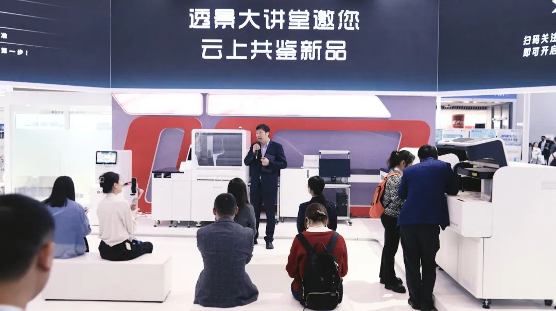 透景生命展位人气高涨的同时,同步开设的“透景大讲堂特别篇之CACLP现场版”也在如火如荼中进行,由相关产品经理分别围绕“高度集成,高速智能”、“让自免检测走上流水线”、“发光大精灵,让甲功检测更精准”展开现场讲解,详尽讲述透景产品及方案优势特色的同时,与各路参观人员答疑互动。