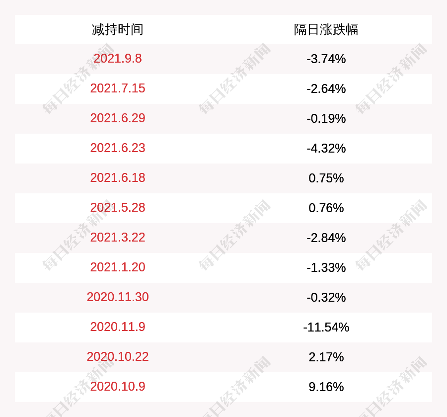 2.超频三上次发布减持公告是2021年09月08日,第二个交易日下跌3.74%,超频三近一年共发布13次减持类公告。