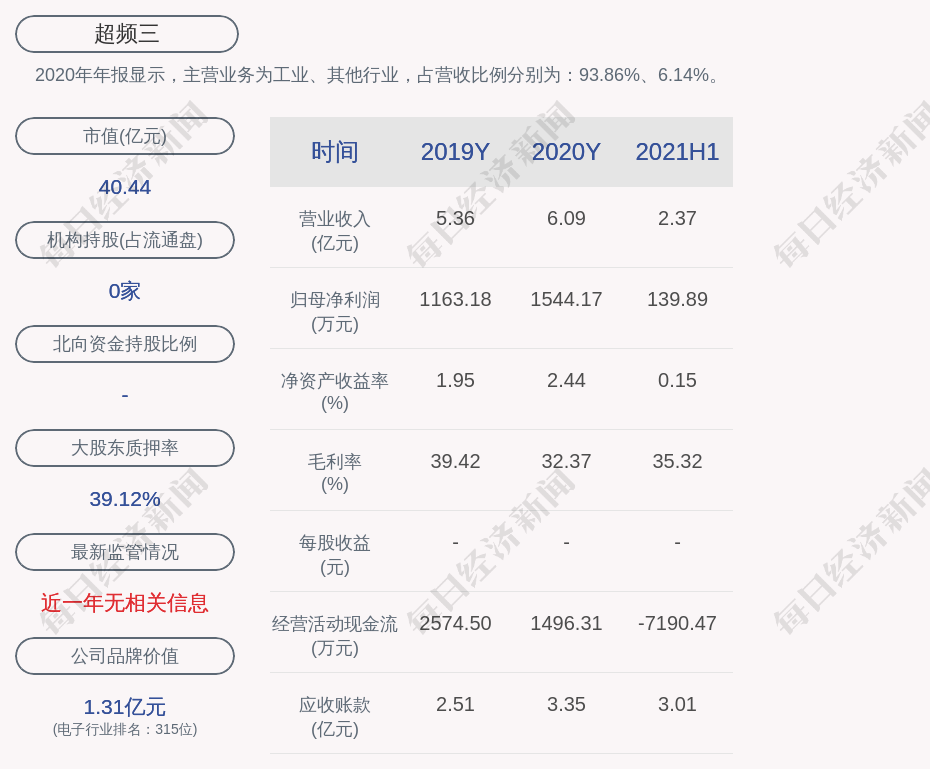 2020年年报显示,超频三的主营业务为工业、其他行业,占营收比例分别为:93.86%、6.14%。