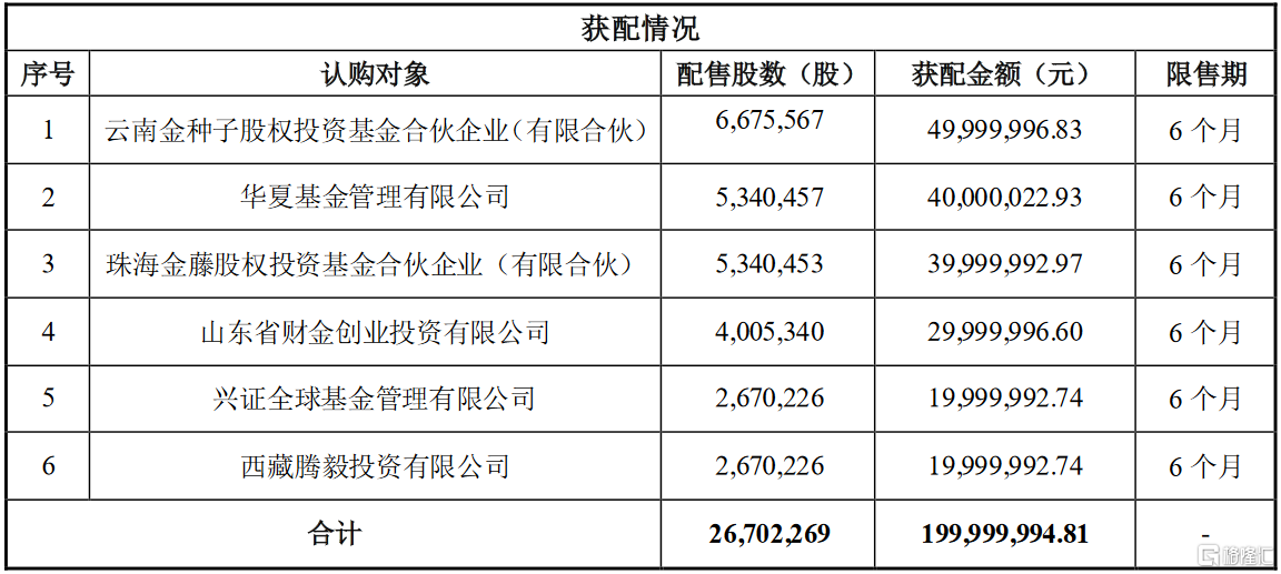 超频三(300647.SZ)发布2022年度以简易程序向特定对象发行股票之发行情况报告书,确定此次发行股票的发行价格为7.49元/股,发行数量为2670.2269万股,募集资金总额约2亿元。发行对象及其获配股数、认购金额的具体情况如下: