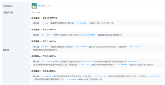 目前,黄世霖通过其持股90%的福建集智储能技术有限公司及多家公司,间接持有时代星云约32%的股权。
