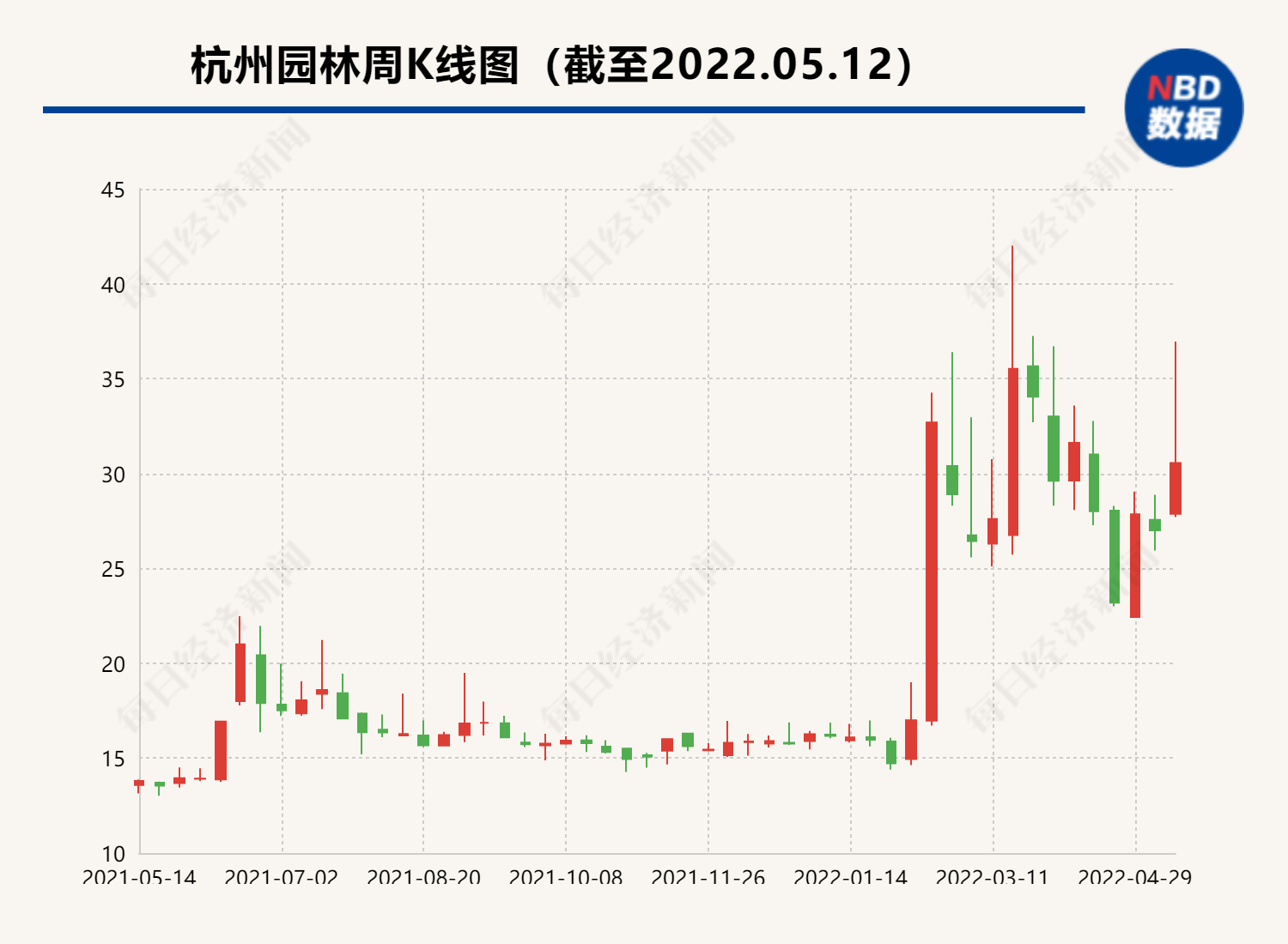 值得一提的是,今年以来,杭州园林股价逆势上涨,已经实现翻倍。1月27日,杭州园林报收于14.41元/股。但在这之后,杭州园林股价急速攀升,于3月17日盘中达到今年股价的最高点42元/股。随后,经历一段时间震荡调整,于近期再持升势。截至5月12日午盘,报收于31.87元/股。