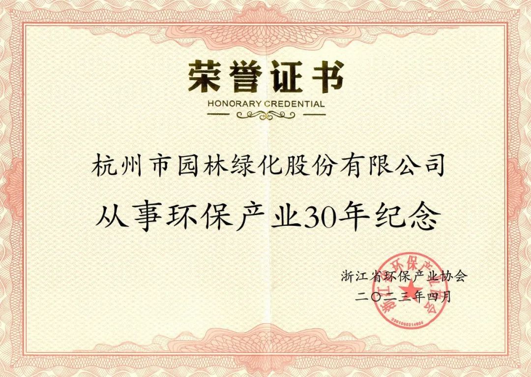 近日,在浙江省人民大会堂隆重召开的浙江省环保产业协会第七次会员代表大会上,杭州市园林绿化股份有限公司等16家业内资深企业被授予“从事环保产业30年”奖。