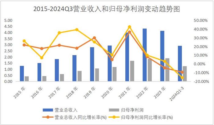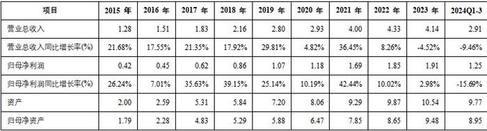 2015年到2024年三季度末,资产总额从2亿元增长3.89倍至9.77亿元;归母净资产从1.79亿元增长4倍至8.95亿元。从资产总额和归母净资产来看,公司规模不大。