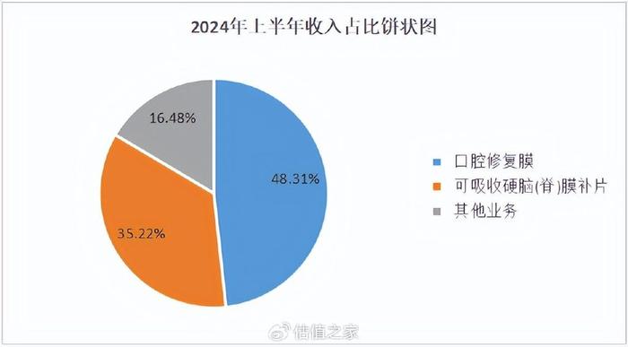 根据正海生物2024年半年报数据:口腔修复膜销售收入9566万元,收入占比48.31%;可吸收硬脑(脊)膜补片销售收入6973万元,收入占比35.22%;其他业务收入3263亿元,收入占比16.48%。按地区划分,2024年上半年主营业务集中于中国大陆。