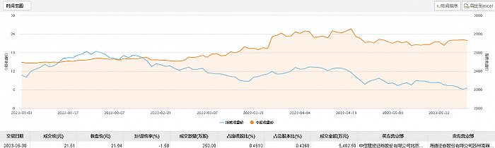 晶瑞电材5月30日大宗交易成交250万股,成交额5402.5万元,占当日总成交额的8.96%,成交价21.61元,较市场收盘价21.94元折价1.5%。