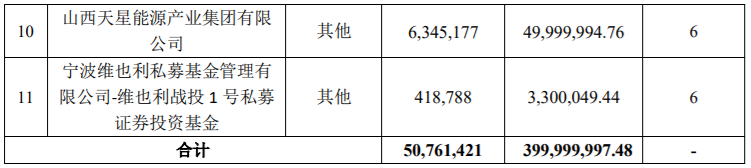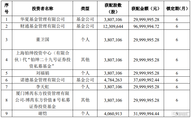 8月11日丨延江股份(300658.SZ)公布2021年度向特定对象发行股票发行情况报告书,此次发行最终价格确定为7.88元/股,最终发行规模为5076.14万股,募集资金总额约4.90元。此次发行对象最终确定为11家,具体配售结果如下:
