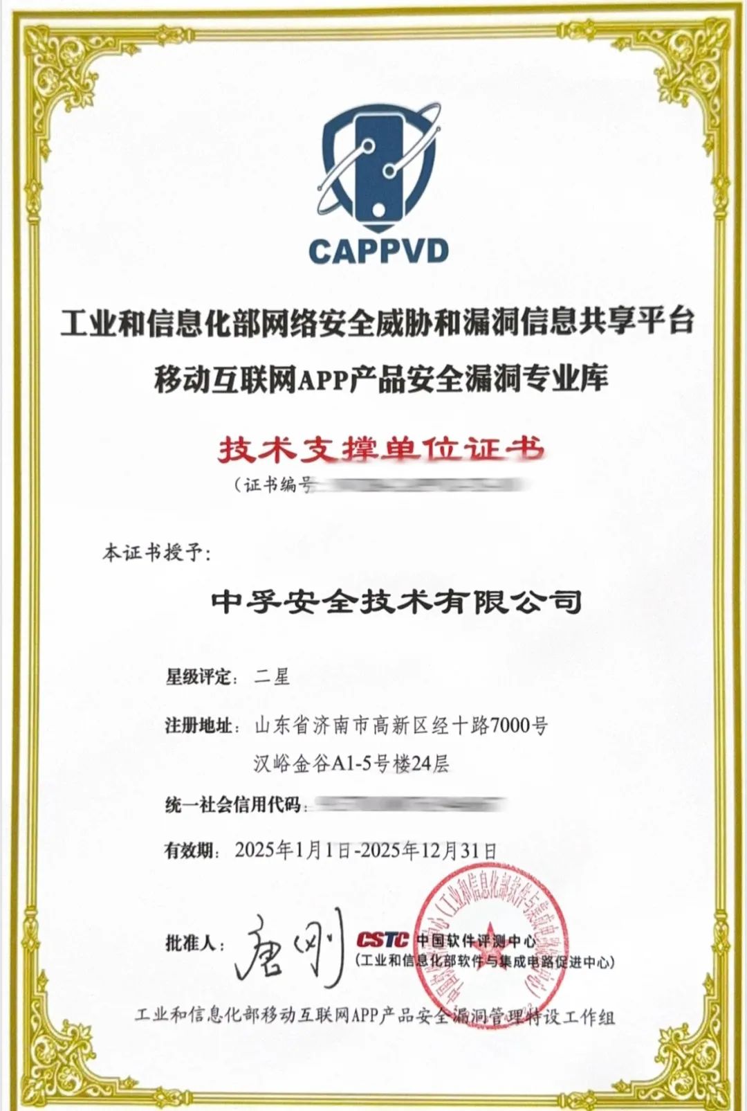 近日,工业和信息化部移动互联网APP产品安全漏洞专业库(以下简称“CAPPVD漏洞库”)公布了2024年度技术支撑单位能力评定结果。中孚信息凭借行业领先的漏洞挖掘能力、突出的漏洞报送工作表现、优质的安全服务能力再次成功入选,获评CAPPVD漏洞库二星级技术支撑单位。