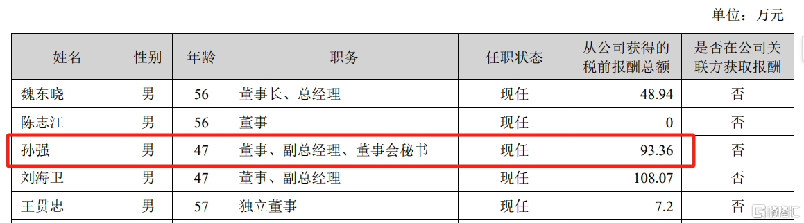 值得注意的是,近年来,孙强的薪酬一路“高涨”,2021年薪酬为75.53万元,到2023年已涨至92.51万元,而2024年更是高达93.36万元。