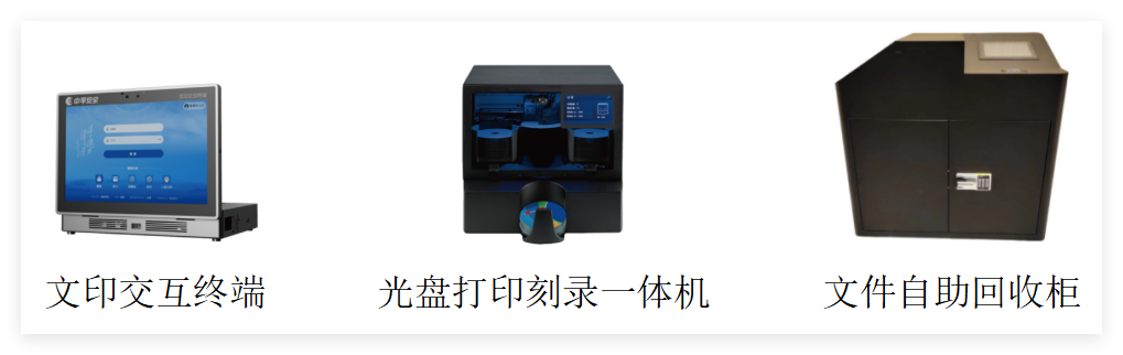 系统通过应用指纹识别、人脸识别等技术实现多种方式身份认证;通过集成光盘刻录与盘面打印于一体,提高光盘输出效率并实现全程记录;通过快速扫描识别技术,实现文件与光盘的批量规范化回收管理。系统可有效防范文印输出环节的泄密风险,增强文印管理的安全性与规范性。