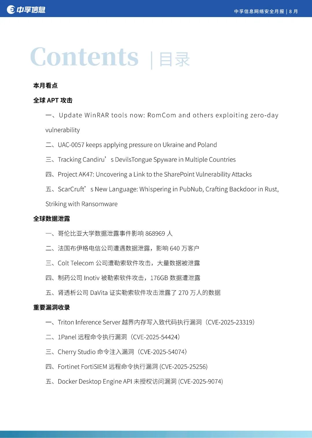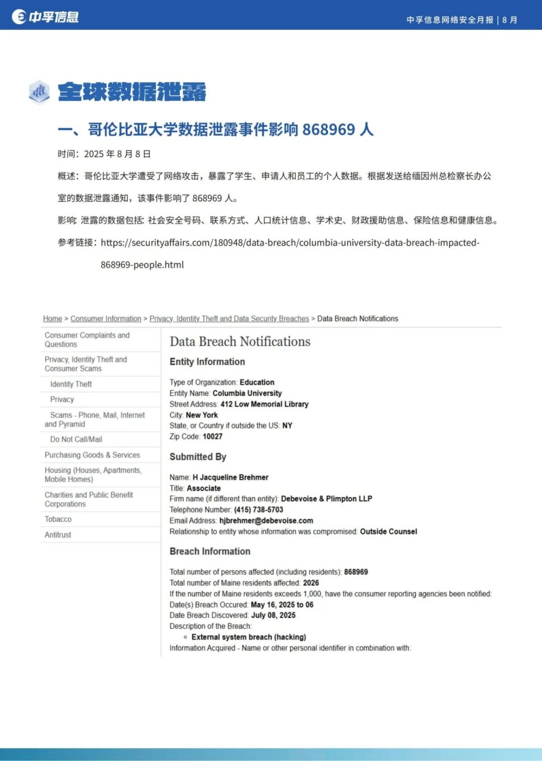 2025年9月1日,中孚信息发布《中孚信息2025年8月网络安全月报》。