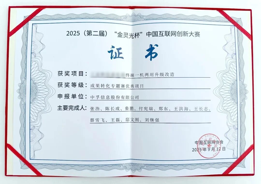 近期,2025(第二十四届)中国互联网大会雄安分站暨中国互联网创新论坛在雄安成功举办。会议期间隆重揭晓了2025(第二届)“金灵光杯”中国互联网创新大赛获奖名单。中孚信息凭借“某部终端一机两用升级改造”项目,荣获成果转化专题赛“优秀项目”奖。