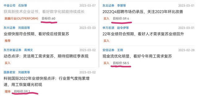 3月2日,国泰君安分析师在研报中提到,考虑科锐国际交付能力优势驱动增速高于行业,给予2023年高于行业平均30xPE估值,维持目标价至59.10元。