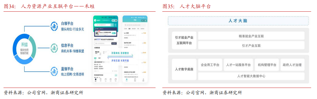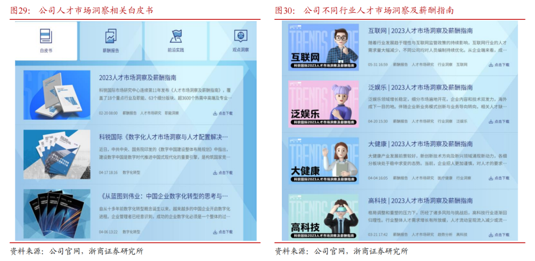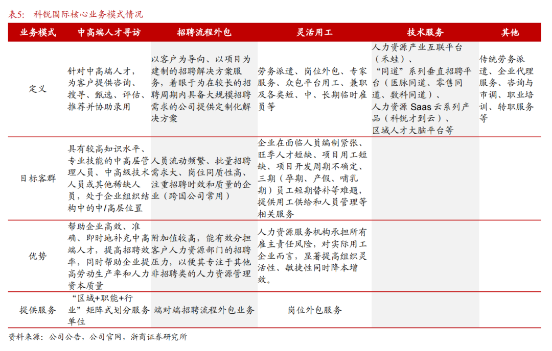 民营企业:聚焦中高端人才访寻、灵活用工,线上招聘等细分赛道,公司间能力差异较大。通过持续创新、数字化发展增强竞争力,获客能力较国企不足。