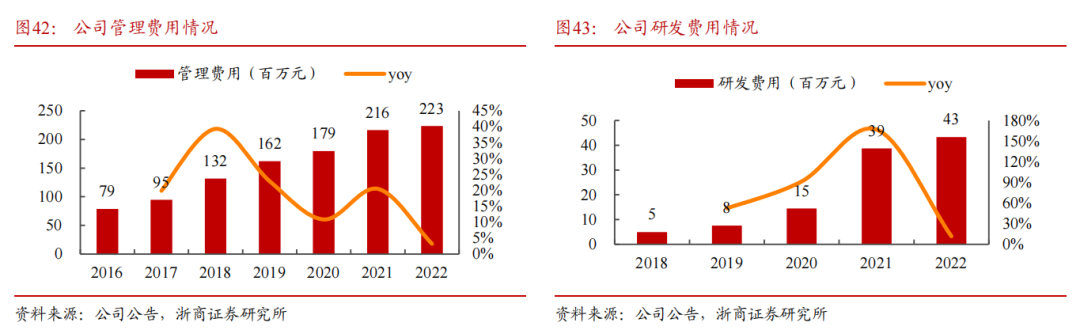 管理费用率改善,内部效率提升;研发投入维持高增速,促进公司新业务发展。2021年公司研发费用显著提升,主要系公司将技术服务单独列为主营业务之一,2021年全年公司技术投入超1.1亿元,公司研发人员数量亦显著提升,从而拉升整体费用支出。2022年公司持续投入研发,但因2021年前期铺垫已基本完成,因此研发费用增速显著下降。