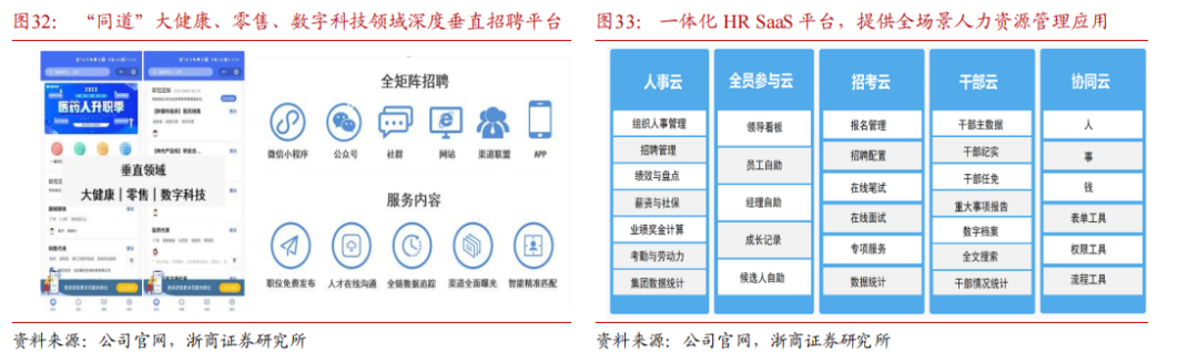 (2)一体化HR SaaS平台实现多场景运用,旗下针对企事业单位线上招考服务的“招考一体化平台”,可支持全流程或单一模块的功能,具备国家信息安全等级保护三级资质,可支持 3,000 人同步在线录制面试,帮助企事业单位实现人才引进和公开招聘流程的数字化管理。截至2022年底,累计服务客户1,000+家,累计在线笔试面试30万人次,业务覆盖新疆、山东、河北、河南、山西、安徽、广东、甘肃、福建等省份。