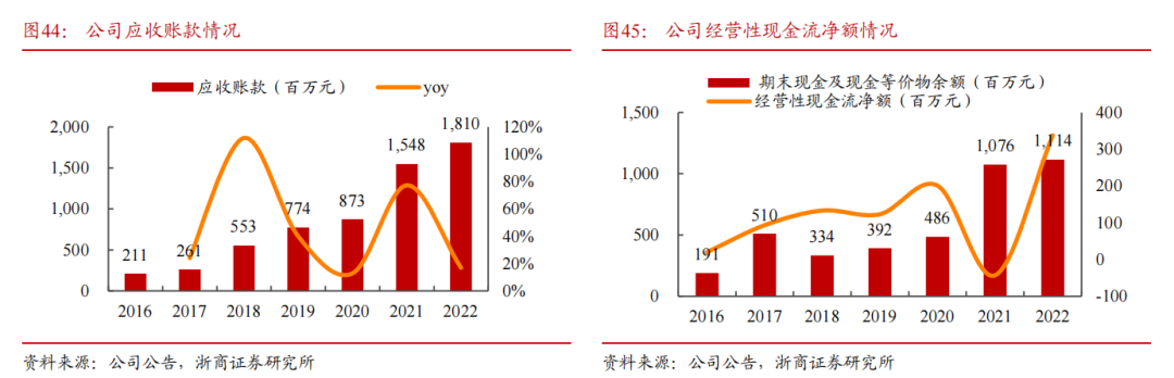 应收账款高企,经营性现金流充裕。人服公司因客户在合同约定流程节点完成后才支付费用,因此通常存在大量应收账款。截至2022年底,公司应收账款18.10亿元,yoy+16.90%,公司核心客户集中度较高,应收账款回款有保障。截至2022年底,公司经营性现金流净额为3.38亿元,在手现金充裕。
