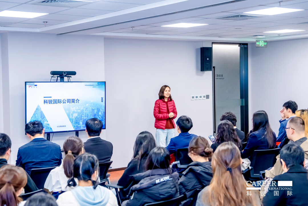 在活动中,ACCA北京代表处华北企业合作负责人 Belinda Chen 首先介绍了本次参访活动对于学员的意义和价值,并对科锐国际给予本次活动的大力支持表达感谢。科锐国际高级市场总监 Kimberly Liu 对ACCA学员的到来表示热烈欢迎,为学子们详细介绍了人力资源服务产业的发展机遇,以及科锐国际的整体概况与独特优势。