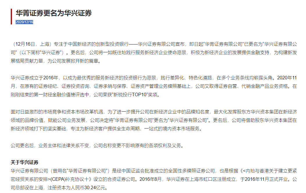 2020年12月,“华菁证券有限公司”官宣:更名为“华兴证券有限公司”之际,行家为此进行了专题点评,至今已有三年之久。