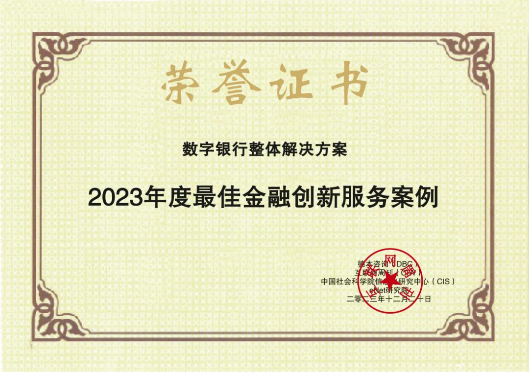 12月20日,由中国科学院《互联网周刊》、中国社会科学院信息化研究中心、eNet研究院、德本咨询联合主办的2023第二十一届中国互联网经济论坛“2023金i奖”榜单发布。该奖项旨在关注国产软件、信创、工业互联网、数字经济、专精特新等领域做出突出贡献的企业,科蓝软件凭借数字银行整体解决方案荣获2023年度最佳金融创新服务案例。