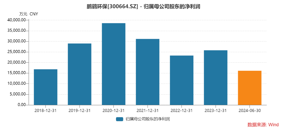 自上市以来,鹏鹞环保的业绩起起伏伏,数据显示,公司2018-2023年的归母净利润分别为1.68亿元、2.90亿元、3.86亿元、3.11亿元、2.33亿元和2.58亿元。