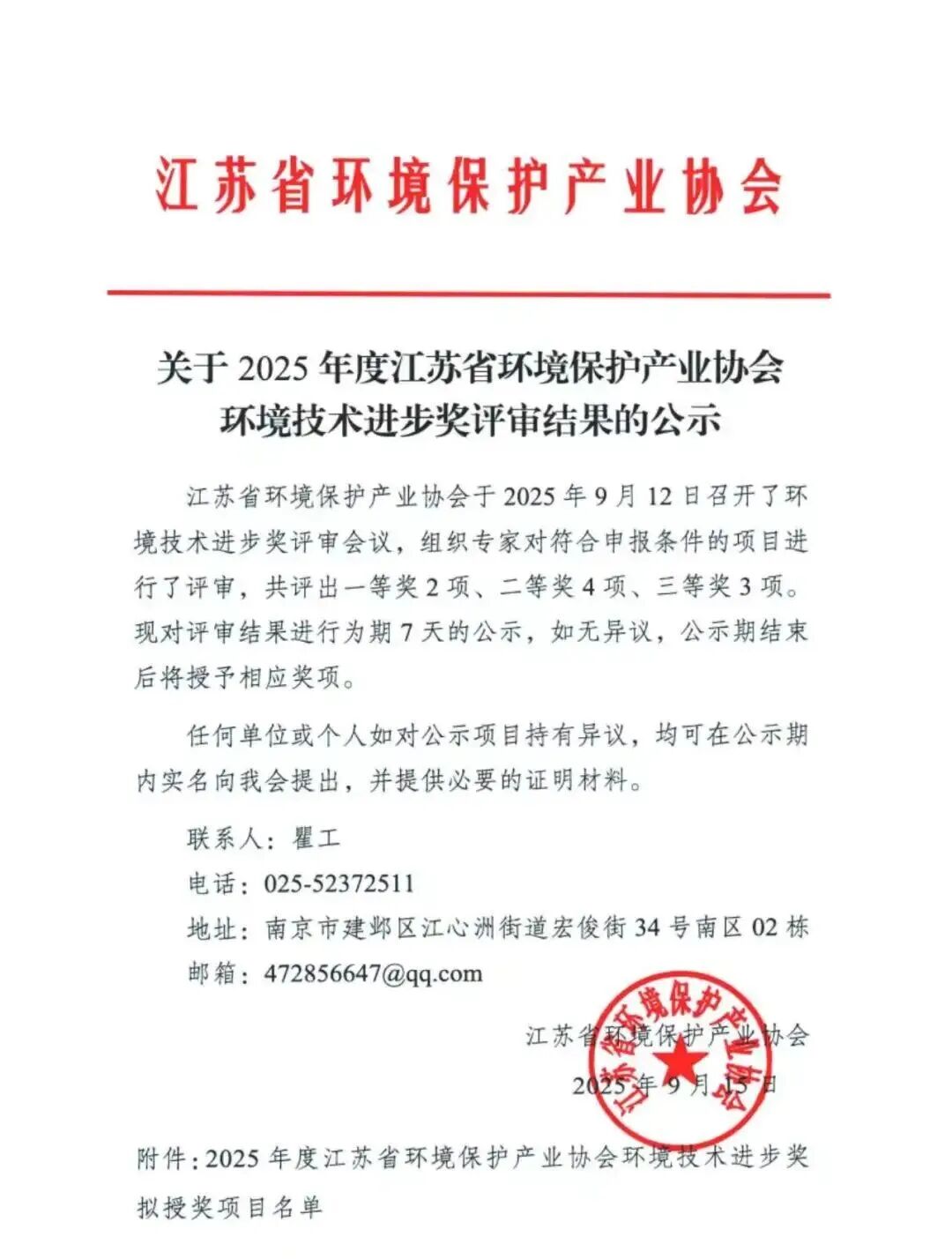 近期,江苏省环境保护产业协会组织召开了2025年度江苏省环境技术进步奖评审会议。鹏鹞环保凭借自主研发的“PPMI装配式水处理系统”,在众多申报项目中脱颖而出,成功斩获一等奖。