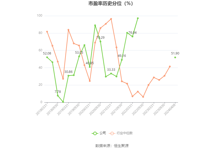 市盈率为负时,不显示当期分位数,会导致折线图中断。