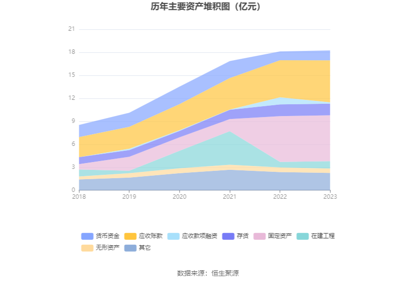 资产重大变化方面,截至2023年年末,公司应收款项融资较上年末减少80.12%,占公司总资产比重下降4.11个百分点;应收账款较上年末增加13.33%,占公司总资产比重上升3.37个百分点;在建工程较上年末增加32.23%,占公司总资产比重上升1.26个百分点;货币资金较上年末增加10.52%,占公司总资产比重上升0.64个百分点。