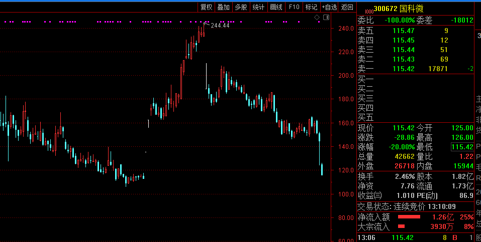 2月7日,国科微低开低走快速封死跌停。截至发稿报115.42元,跌20%,跌停板封单仍有1.78万手。