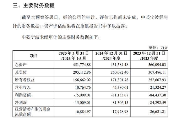 据国科微公告,截至今年3月底,中芯宁波的所有者权益约15.7亿元。2023年和2024年,中芯宁波的净利润分别约为-8.4亿元和-8.1亿元。