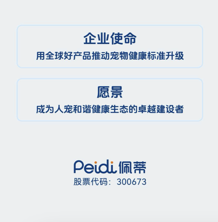 一路走来,公司始终珍视消费者给予的认可与信赖,这不仅是荣誉,更是激励前行的动力。后续,公司将以更细腻周到的服务、高品质的产品,深度融入每一位宠物主与爱宠相伴的时光,用全球好产品推动宠物健康标准升级,成为人宠和谐健康生态的卓越建设者,成为用宠物赋能人类幸福生活的积极推动者。
