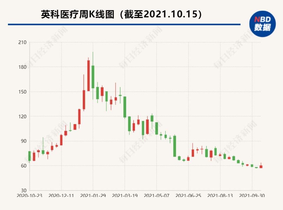 《每日经济新闻》记者注意到,这也是英科医疗净利润今年连续两个季度下降。业绩下降同时,英科医疗股价的股价也一路震荡回调:在年初创造196.07元/股(送转后股价)的历史新高后,截至10月中旬,英科医疗股价已回调接近70%,市值蒸发超过700亿元。