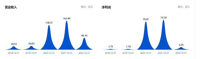 巨潮资讯数据显示,2020年-2022年,英科医疗实现营业收入为138.37亿元、162.40亿元、66.14亿元,同期净利润为70.07亿元、74.30亿元、6.29亿元,不难看出,英科医疗的业绩在2022年出现滑坡。