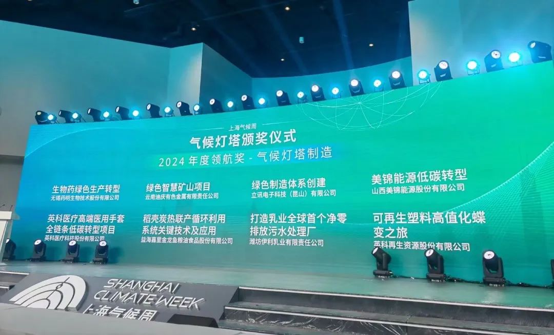 4月22日,世界地球日之际,备受全球瞩目的上海气候周2024在上海浦东美术馆盛大开幕,汇聚全球智慧,探讨应对气候变化的策略与路径,推动城市与产业的绿色转型。英科医疗凭借其“高端医用手套全链条低碳转型项目”在2024年上海气候周中入围并荣获2024年度气候灯塔制造领航奖,彰显了在可持续发展领域的努力与成绩。