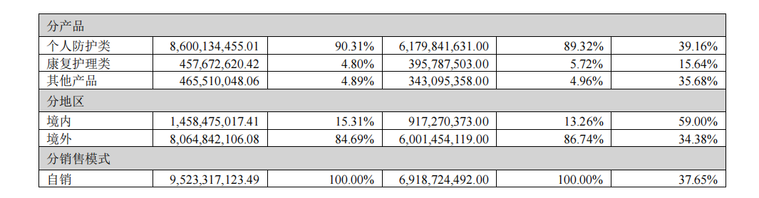 560亿只丁腈手套年化产能撑起了英科医疗的业绩神话。2024年个人防护类产品贡献90.31%的营收,其中丁腈手套均价同比上涨直接带动毛利率回升。但这种单一产品依赖已导致公司业绩剧烈波动——2022-2023年行业去库存期间,其净利润从6.29亿元暴跌至3.83亿元,跌幅达39.12%。