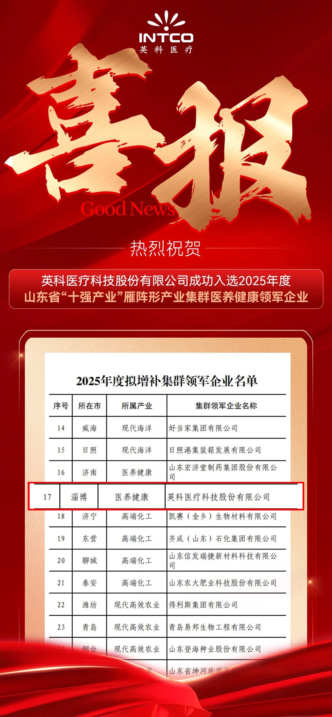 喜报!英科医疗入选2025年度山东省“十强产业”雁阵形产业集群医养健康领军企业