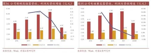 公司射频连接器、电磁兼容器产品主要应用在智能手机中,受宏观经济因素及智能手机性能过剩导致的消费者换机需求降低,消费电子行业的需求都于近几年的历史低位,智能手机销量下降导致公司射频连接器及电磁兼容器产品营收放缓,并在 2022 年 H1 出现负增长。