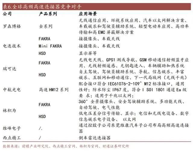 从入局车载高速连接器的厂商来看,拥有通信类射频连接器研发经验的企业具备一定优势。