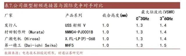 公司目前的第 5 代微型射频同轴连接器及射频微同轴线缆组件产品已成为供应下游企业的先进产品,嵌合高度和电压驻波比等关键技术指标与国际领先供应商持平。